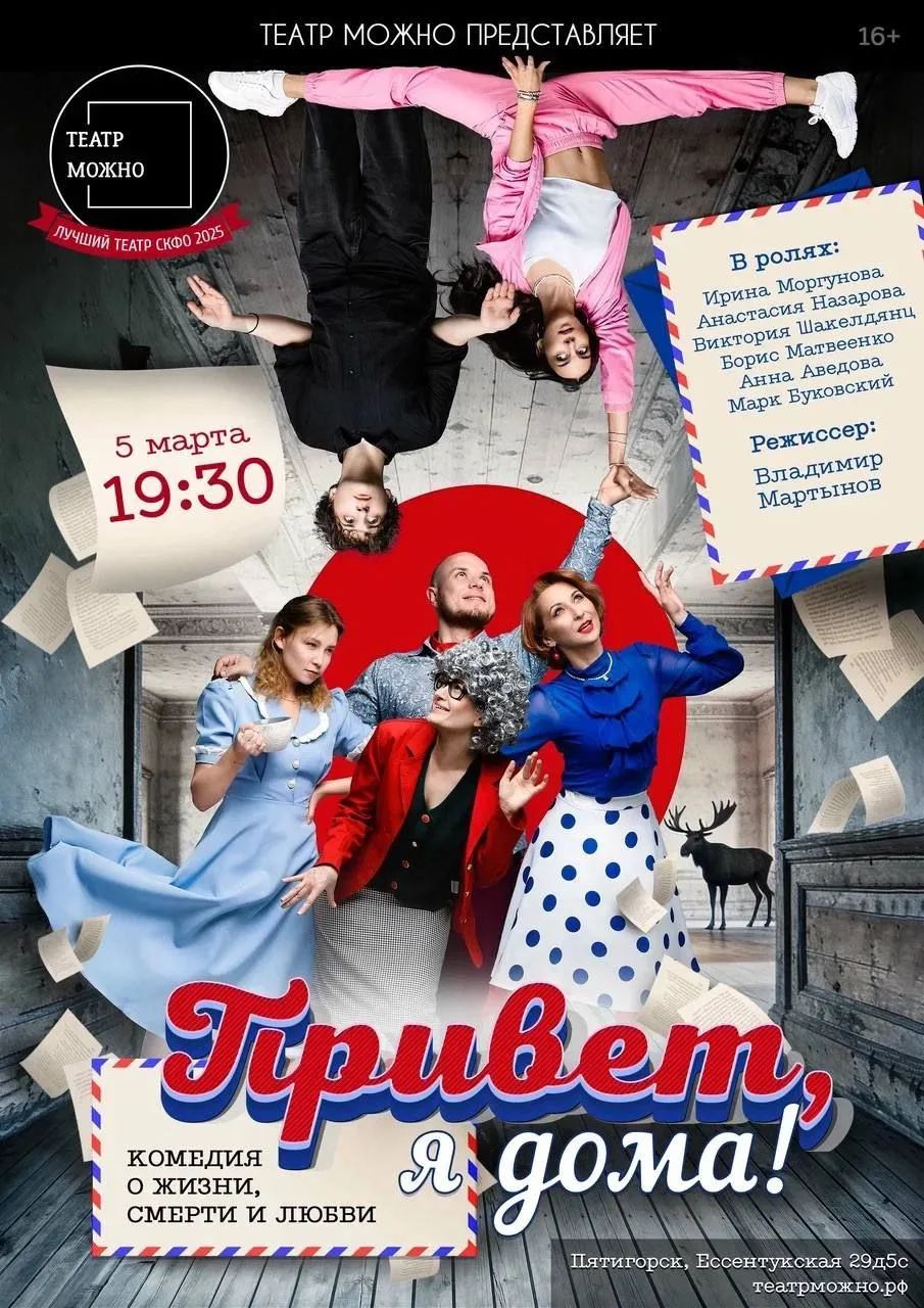 ЗАКРЫВАЕМ МАРТ С УЛЫБКОЙ ДО УШЕЙ! 😄 ✨ Спектакль «Привет, я дома» (по мотивам бродвейского хита М. Маккивера «37 открыток») Если вы устали от забот и хотите просто от души посмеяться — этот вечер для вас! Знакомство невесты с родителями жениха — это всегда стресс. Но когда родители — абсолютно сумасшедшие, бабушка восстает из мертвых, а по дому бродят странные личности... вечер перестает быть томным! Невероятно теплая и смешная история о том, что какими бы безумными ни были наши родственники, дом — это место, где нас любят любыми. 🎭 Жанр: Эксцентричная комедия.