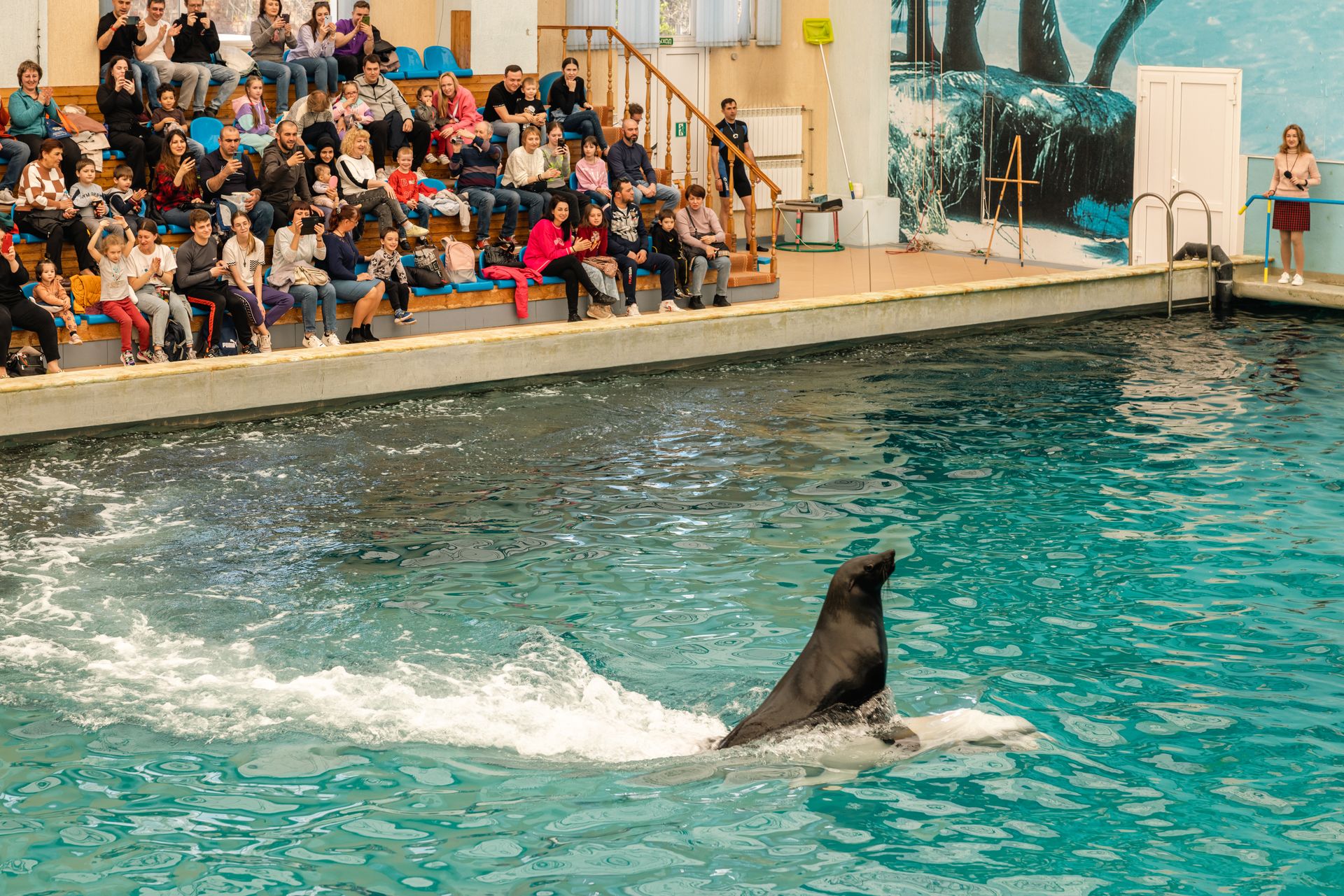 Дельфины — это удивительные создания с необычайно развитым интеллектом, разнообразными эмоциональными и поведенческими факторами, высокой чувствительностью к окружающей среде. Учеными установлено, что эти млекопитающие могут передавать друг другу сигналы на своем языке. Дельфинарий в городе-курорте Кисловодске — это место, где есть шанс вживую посмотреть на этих удивительных животных, ведь даже в открытом море без специализированной экспедиции их увидеть невозможно. Вы увидите представление морских животных, узнаете о различных представителях морских глубин, в первую очередь — дельфинов, и убедитесь, что они очень легко поддаются дрессировке. Звёздами выступления здесь являются дельфины-афалины — удивительные и добрые создания, которые не перестают удивлять публику своими изящными трюками. Также в Дельфинарии живут морские котики и львы, моржи, сивучи, зубатые киты, белухи и другие подводные обитатели. Умные животные удивят вас своей ловкостью и сообразительностью. Изюминкой программы, конечно же, выступает ум и сообразительность млекопитающих. Дельфины способны изумлять зрителей, ведь они виртуозно и забавно играют с мячом, высоко и синхронно прыгают, рисуют картины, играют в считалки, и это еще не все, на что они способны. Встреча с морскими обитателями — идеальный повод для весёлого отдыха всей семьёй.