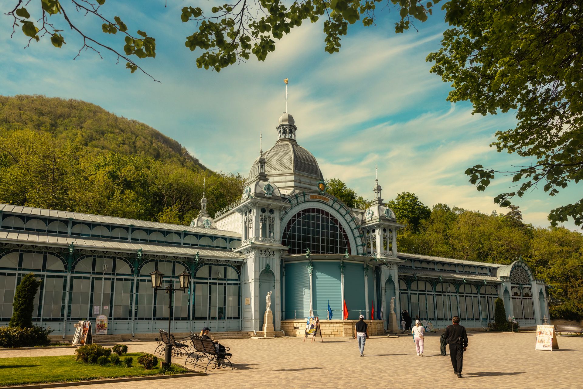 Отправьтесь в захватывающее путешествие по Ессентукам – курорту, знаменитому своими целебными источниками, и Железноводску – уютному городу у подножия горы Железной, где природа и архитектура создают удивительную гармонию. Этот маршрут – часть национального туристического маршрута «Достояние Ставропольской губернии», который объединяет ключевые культурные и исторические объекты региона. Он позволит вам погрузиться в атмосферу старинных курортов, открыть их тайны и ощутить силу целебных вод. Ессентуки – город живой воды День начнётся в Ессентукской грязелечебнице имени Н. А. Семашко – крупнейшем в Европе комплексе бальнеологических процедур, где до сих пор используют уникальную технологию грязелечения. Здесь вы узнаете о становлении санаторно-курортного дела в России, прогуляетесь по Курортному парку, попробуете знаменитую минеральную воду источников № 4 и № 17 и услышите истории о знаменитых гостях Ессентуков. Прогулка приведёт нас к Императорским ваннам, спрятанным у подножия Щелочной горки, где отдыхали великие князья и дворяне. Мы заглянем в таинственный «Плачущий грот», увидим ажурную чугунную беседку, сохранившую атмосферу XIX века, и пройдёмся по Воронцовской аллее, где когда-то прогуливались Фёдор Шаляпин, Алексей Горький и Вера Комиссаржевская. Отдельного внимания заслуживает Цандеровский институт механотерапии – уникальный памятник медицинской архитектуры начала XX века. Это здание, выполненное в редкой фахверковой технике, до сих пор хранит оригинальные аппараты механотерапии, которыми пользовались пациенты более века назад. Среди них – великие Фёдор Шаляпин и Константин Станиславский. Интересный факт: именно здесь, среди старинных тренажёров, снимался эпизод легендарного фильма «Любовь и голуби», запомнившийся миллионам зрителей. Железноводск – курорт среди гор Следующая остановка – Железноводск, самый компактный и уютный город Кавказских Минеральных Вод, окружённый густыми лесами и целебными источниками. Сюда приезжали Александр Пушкин, Михаил Лермонтов, Лев Толстой и Сергей Есенин, находя в этих местах вдохновение. Маршрут начнётся с осмотра Бухарского дворца – восточной резиденции эмира Бухарского. Этот изящный дворец в мавританском стиле – одно из самых экзотических зданий на КМВ. Мы узнаем о загадочной жизни эмира, о его влиянии на развитие курорта и увидим роскошные интерьеры, сохранившиеся до наших дней. Затем мы отправимся на Терренкур, ведущий к Скульптурной композиции «Знаки зодиака», где по традиции можно загадать желание. После этого мы посетим Пушкинскую галерею– один из самых красивых выставочных залов региона. Это изысканное здание XIX века с ажурными витражами и элегантными интерьерами стало символом Железноводска. Здесь проходят художественные выставки, концерты и литературные вечера, продолжая традиции культурной жизни курорта. Следующая остановка – знаменитые минеральные источники Железноводска, чьи воды не имеют аналогов на евразийском континенте. Вы сможете продегустировать легендарные воды, которыми лечились Пушкин, Лермонтов, Толстой и многие другие великие деятели искусства и науки. Следующая точка маршрута – Каскадная лестница, одно из самых эффектных архитектурных сооружений Кавказских Минеральных Вод. Возведённая в середине XX века, она напоминае